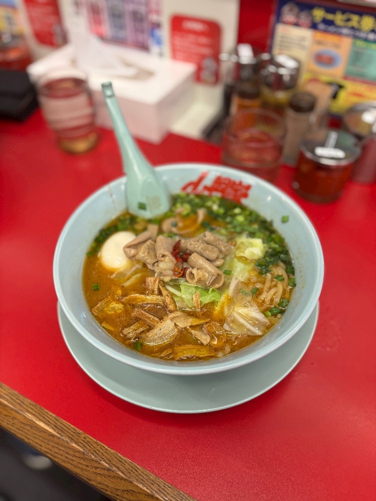 前から気になってた山岡家に行って、期間限定?のもつしょうゆを食べたんやけど、