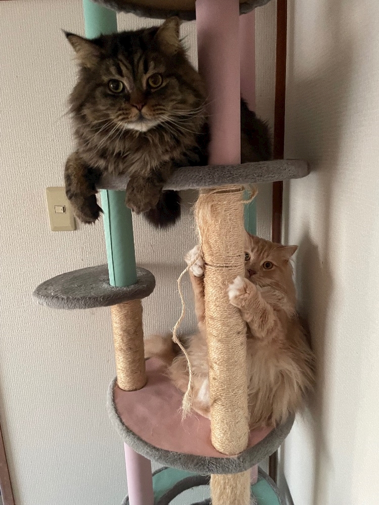 そもそもが、二人がキャットタワーの上下で陣取りやってたから(笑