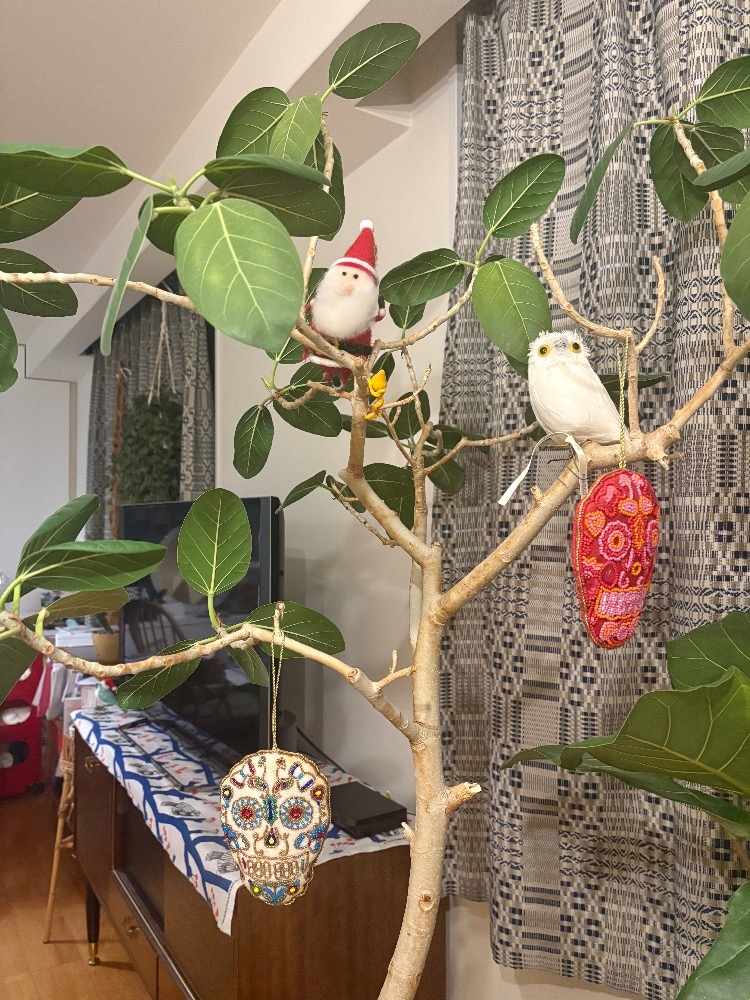 うちのツリーはネコがかじりまくるので処分してしまい今年は観葉植物に頑張ってもらってます笑