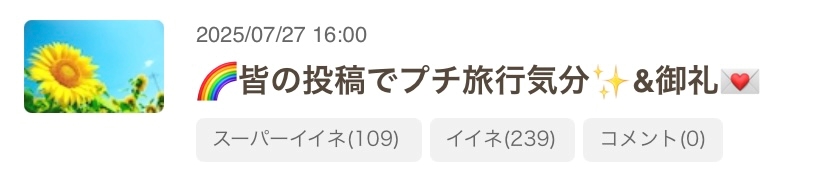 感謝の気持ち御礼上げ投稿💌