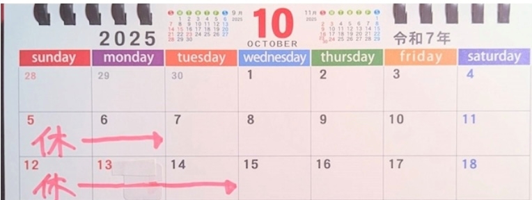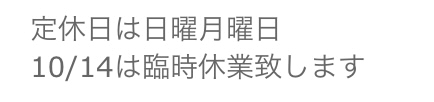 次回の営業日は15(水)〜になります