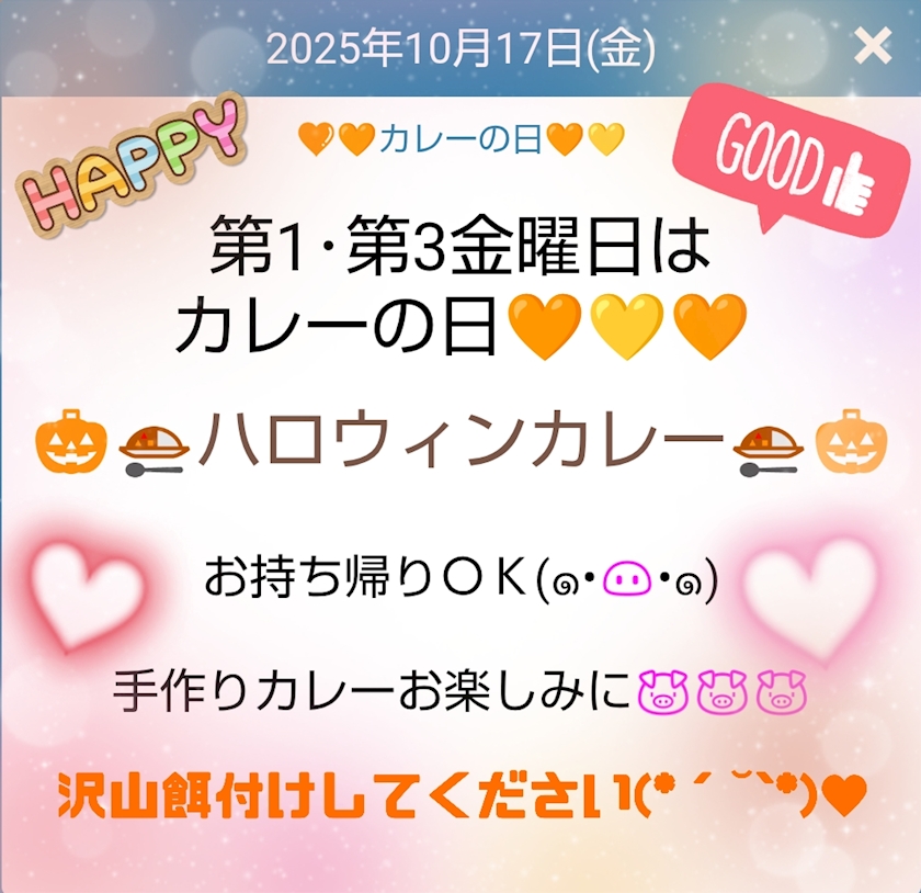 今夜は1年に1度の激レアカレー🍛です🎃👻🤎🧡 - まりあちゃん - ぽっちゃりバー らんでぶぅ・ランデブー - 古河・東口のガールズバー