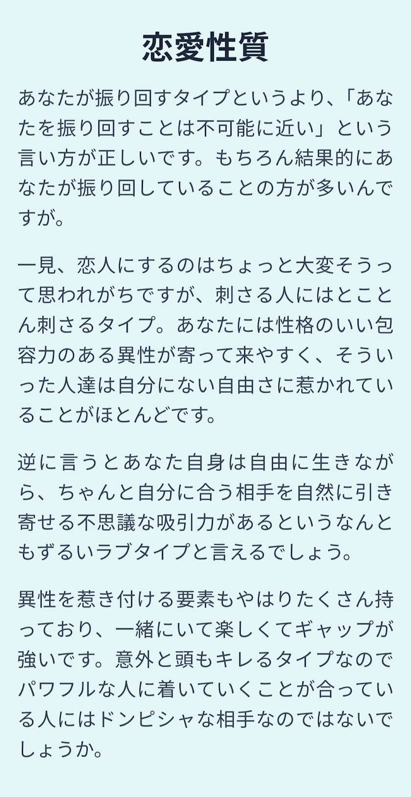 そして 恋愛性質 は…