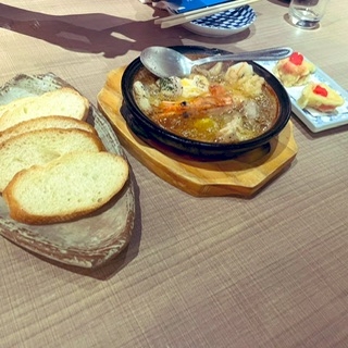 アヒージョにバケット