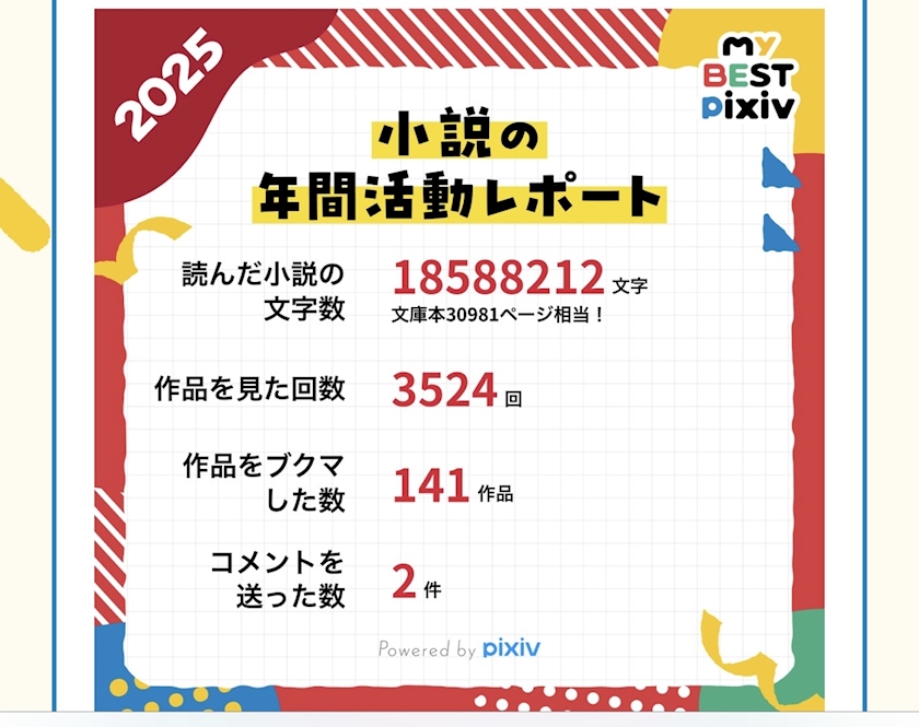 🔽pixiv1年間読んだ小説数📚