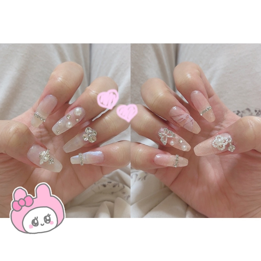 両手、白とピンクで分けてみた