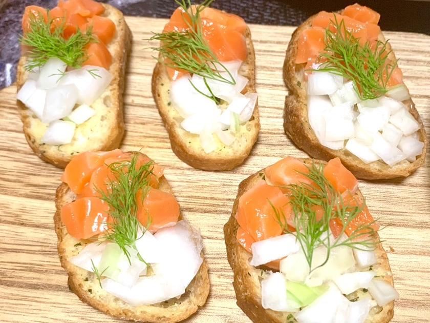 サーモン・玉ねぎ・ディルを乗せただけのやつ