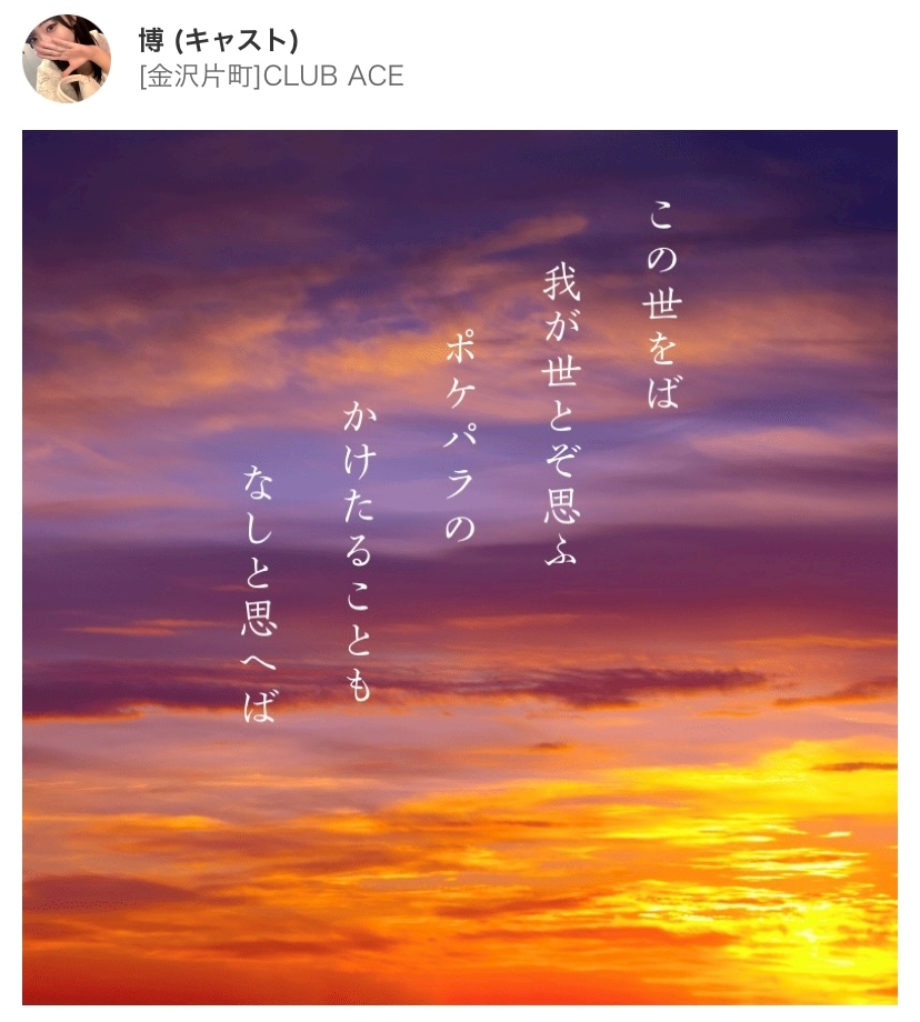 ポケパラベタ褒め短歌 - 博 - CLUB ACE・クラブ エース - 金沢片町のキャバクラ
