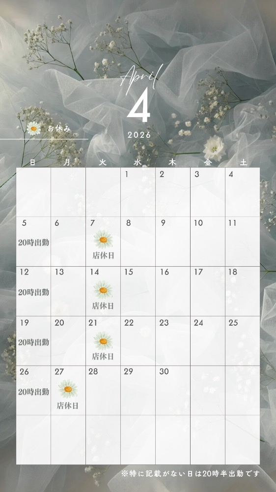 💙ྀི 4月の出勤カレンダー 💙ྀི