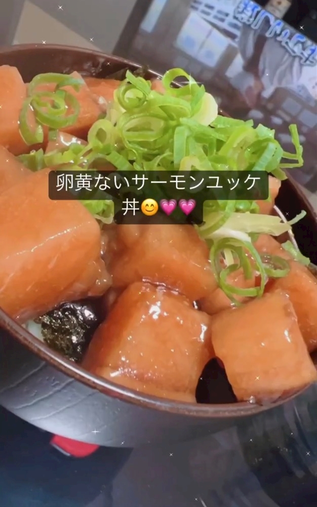 サーモンユッケ丼作った😀