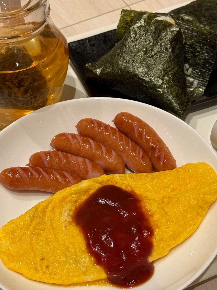 オムレツと頂いたウィンナー