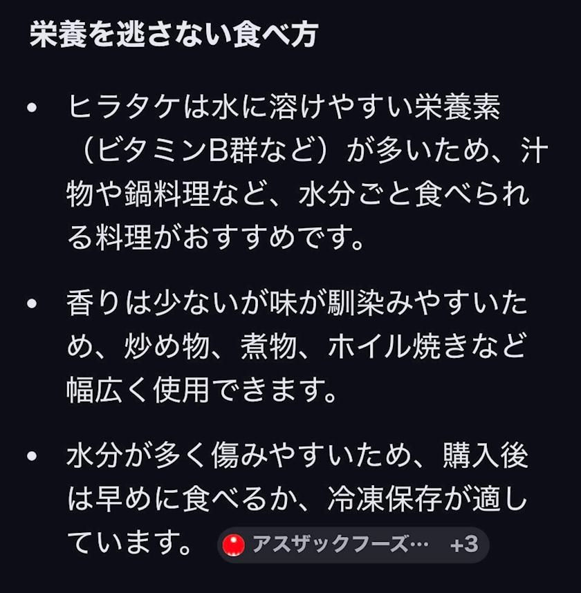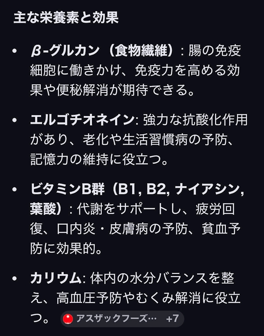 ひらたけの栄養ってなんだっけ?