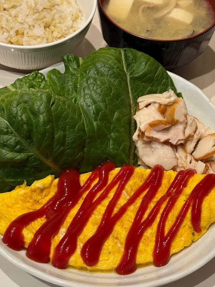 オムレツとロメインレタスサラダ