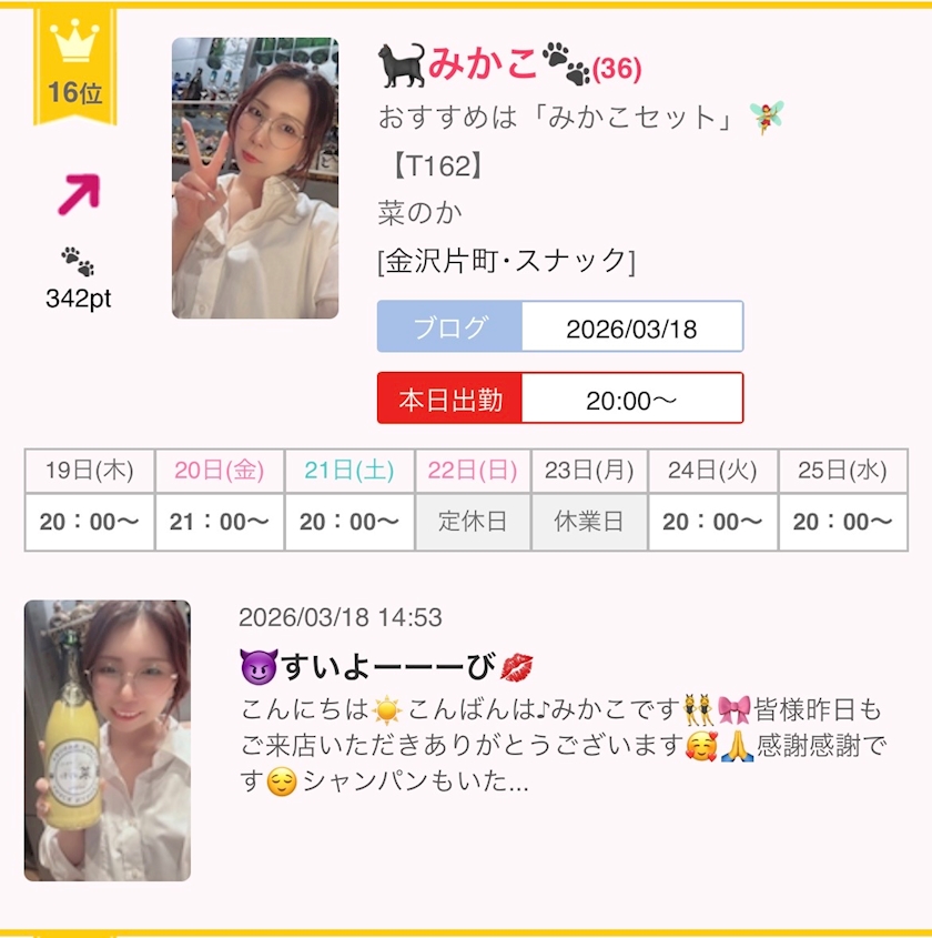 🧞♂️もくよーーーび🧜♀️ - 🐈⬛みかこ🐾 - 菜のか・ナノカ - 金沢片町のスナック