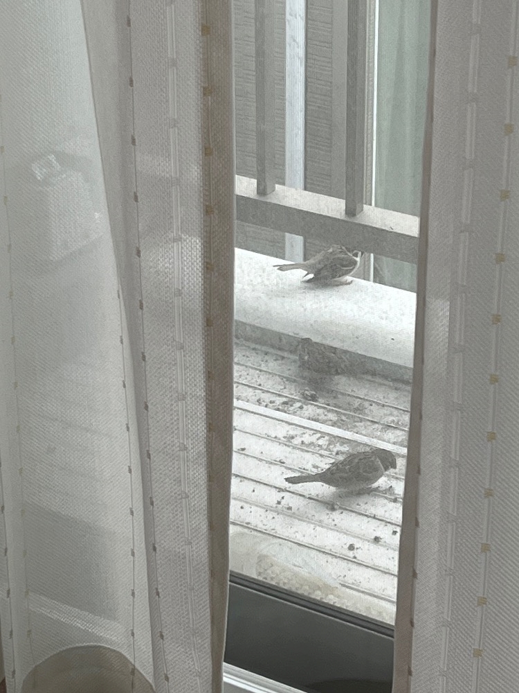 ベランダで遊び始める小鳥たち🦜🪽🫧
