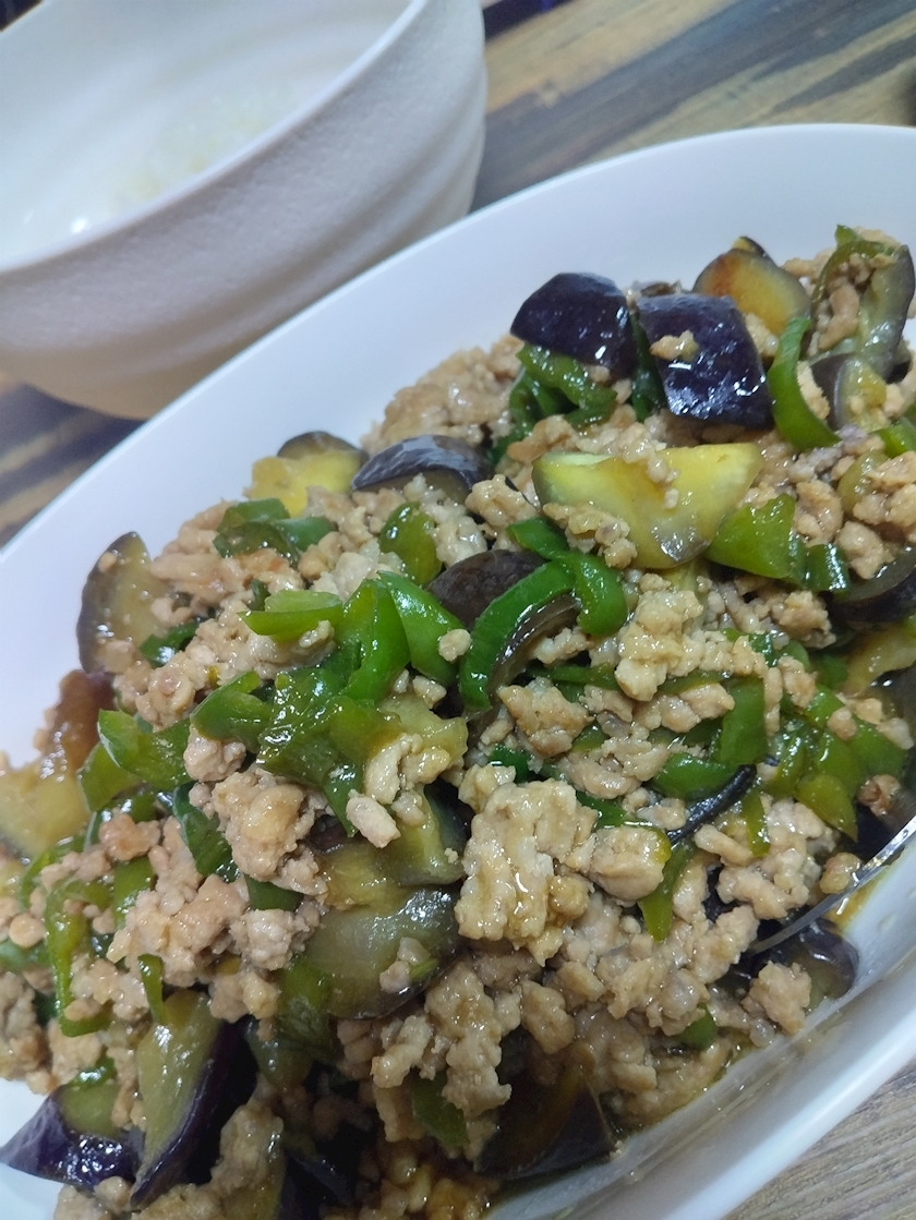 なすの肉味噌!と、海老マヨ!