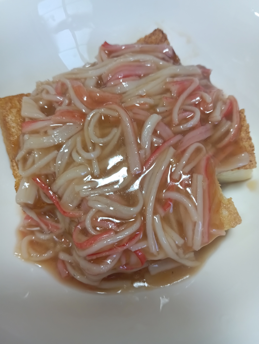 帰ってご飯は厚揚げのカニカマ餡掛け作りました✌️