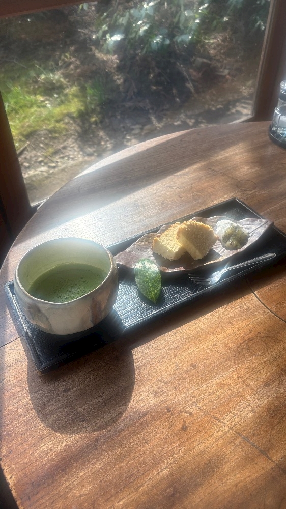 デザートにお抹茶とおからのチーズケーキを頂きました!!久しぶりのお抹茶に興奮💕꒰ 🍵 ꒱チーズケーキの横のジャムが美味しすぎて、手作りのジャムってほんっとに美味しいから好き🥹🥹💖