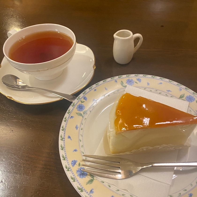 ミルクティーとチーズスフレをたべました♡