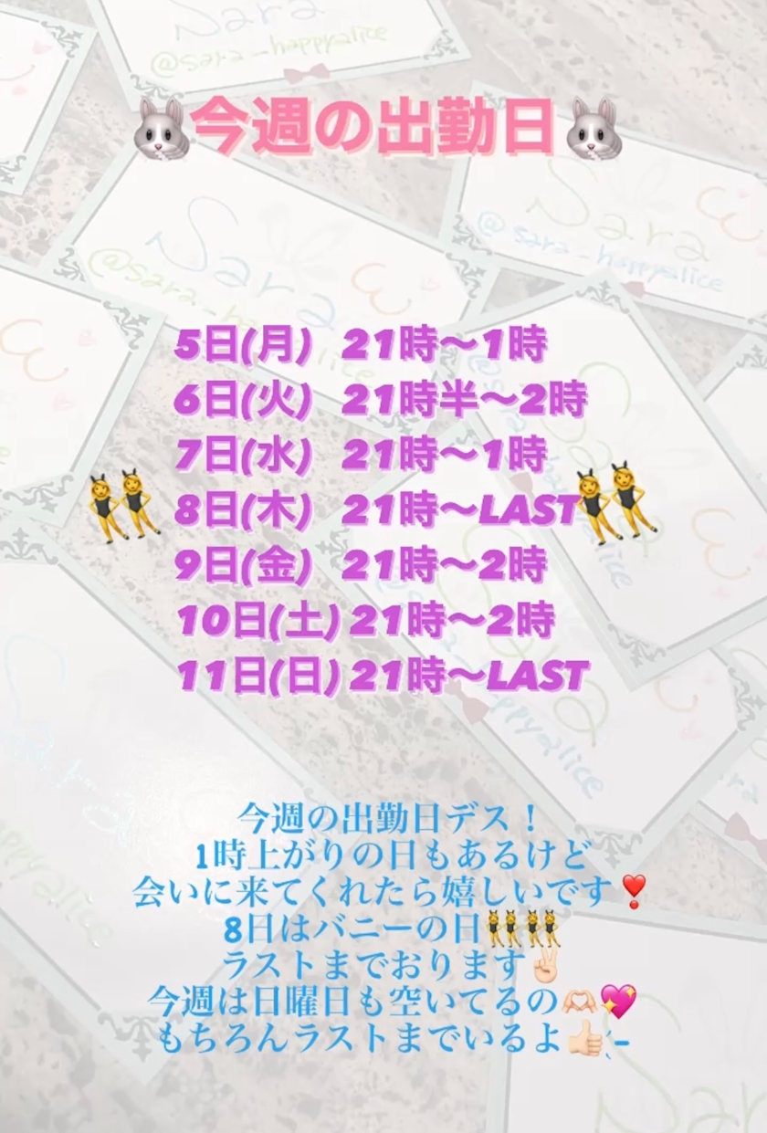 今週の出勤日🐰🥕🐾 - 🫧ソア🫧 - ハッピーアリス本店 - 鹿児島県・天文館のガールズバー