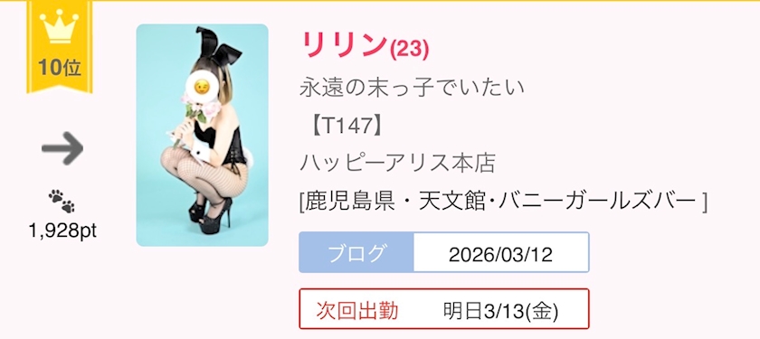 九州ランキング10位!!! - リリン - ハッピーアリス本店 - 鹿児島県・天文館のガールズバー