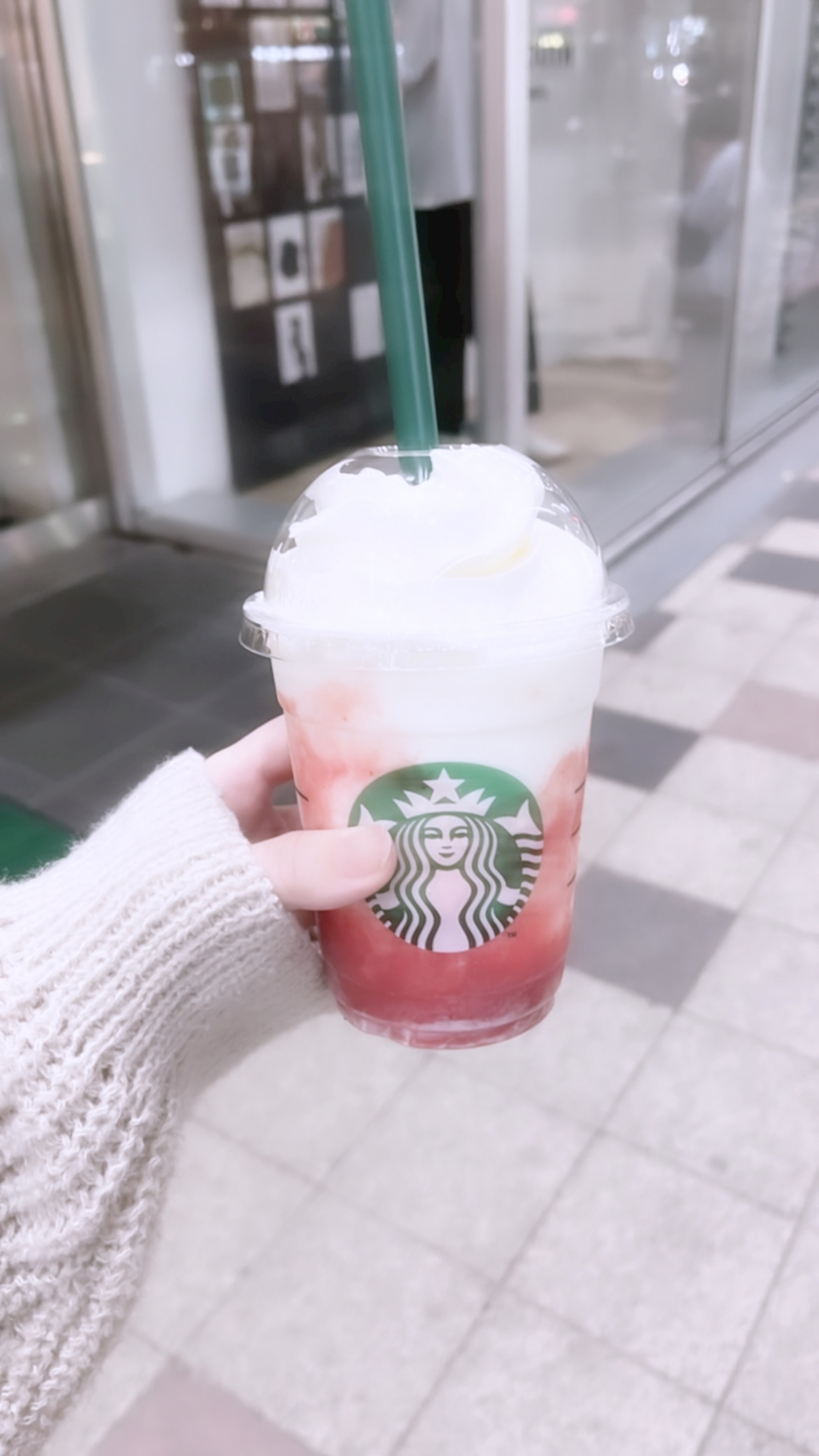 昨日念願のスタバのストロベリーフラペチーノ飲んできました🍓