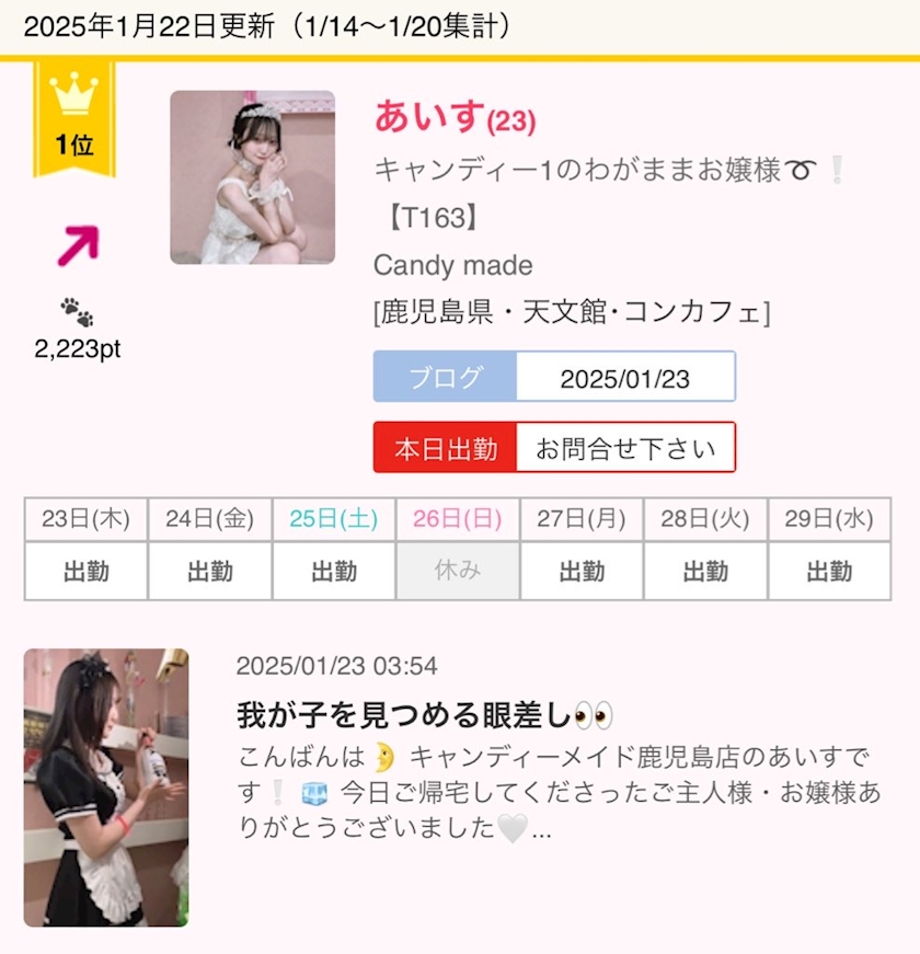 そういえば今日旅行で来ていた初めましてのご主人様にXで鹿児島のお店調べてたらキャンディーが楽しそうだったから来たって言っていただけて嬉しかった🫶🏻