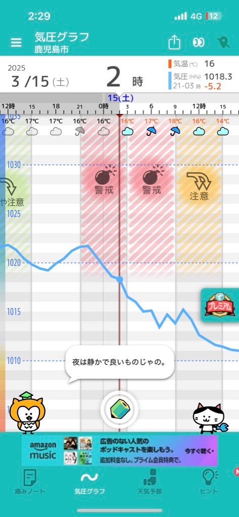 頭痛ーるっていう頭痛予測アプリがあるんだけど土日も爆弾マーク抱えててやだ😸💧