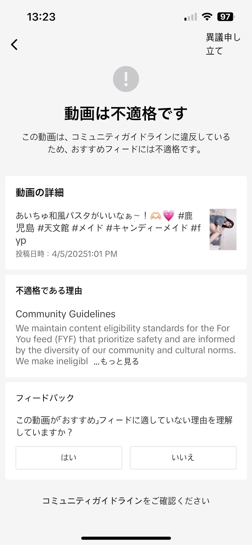 あいちゅは今日投稿したTikTokが不適格呼ばわりされて😾💧おこ😾💧