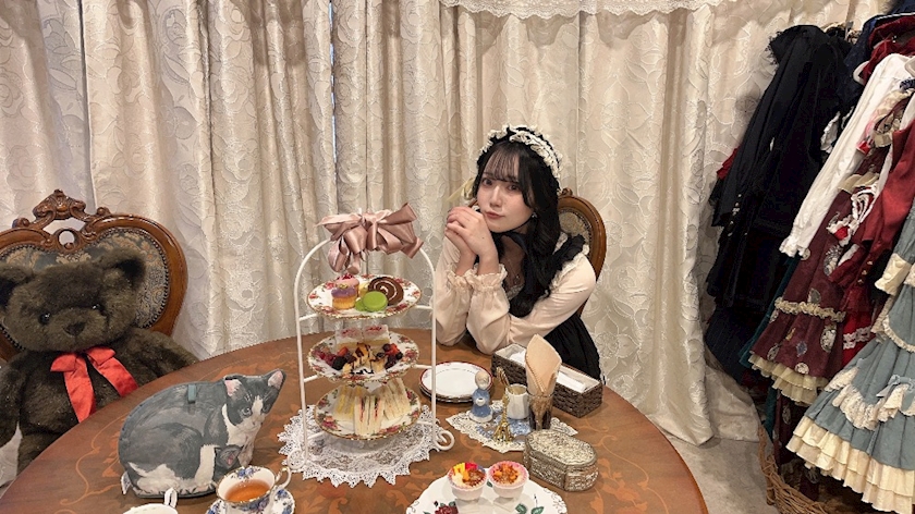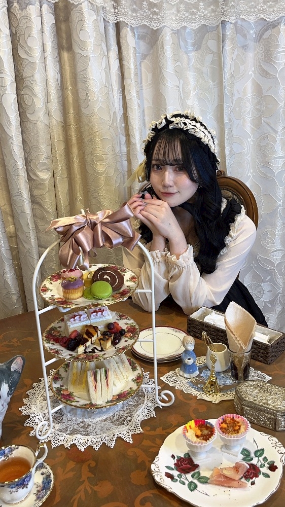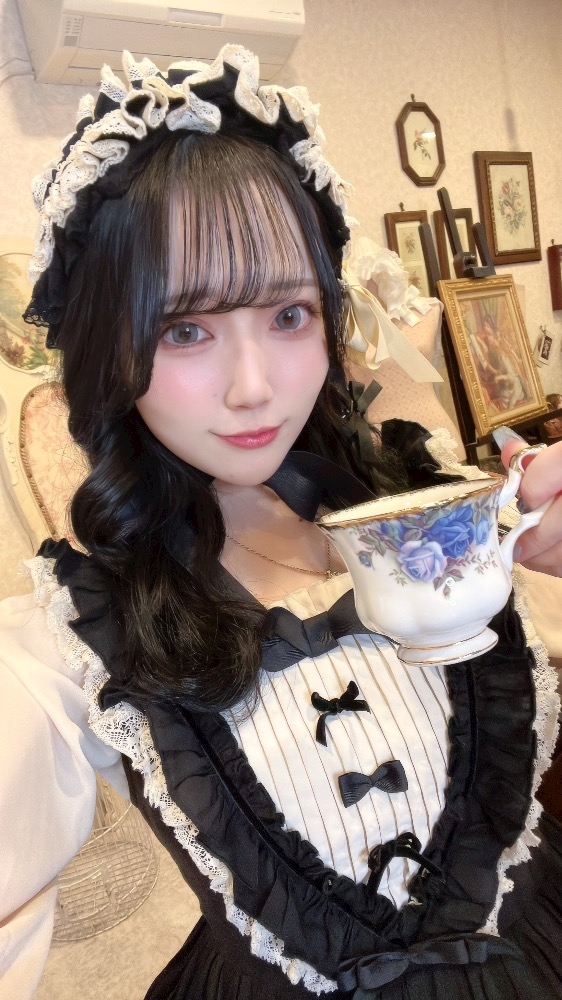 ちなみにここロリータ選べるだけじゃなくて使いたいティーカップもたくさんあるなかから選ばせてくれるの🥹(めっちゃ手厚い)(あいすさんはやっぱりブルー🥀💙)