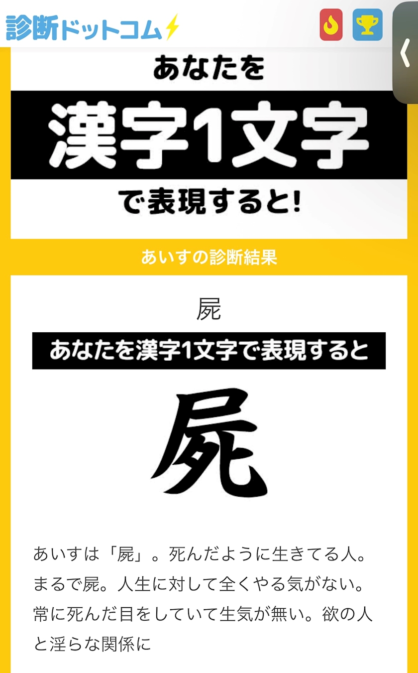 そういえばポケパラであなたを漢字一文字で表現すると!みたいな診断してる方を見かけて面白そうだなって思って私もやってみたのね❕