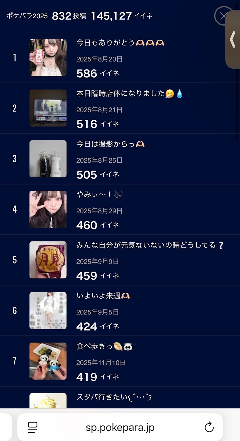 今年ポケパラ832投稿もしてたよ😸😸 - あいす - 鹿児島/天文館/コンカフェ/キャンディーメイド