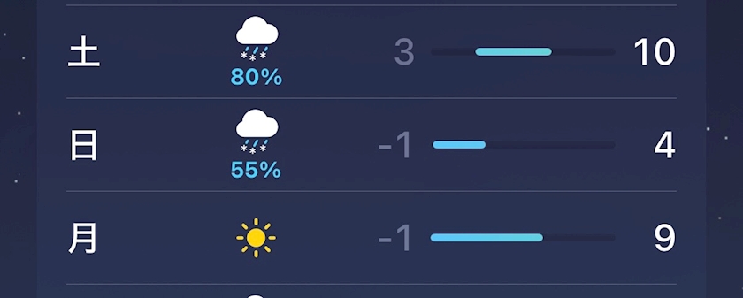 鹿児島なのに最低気温マイナス1度にみぞれマーク😸