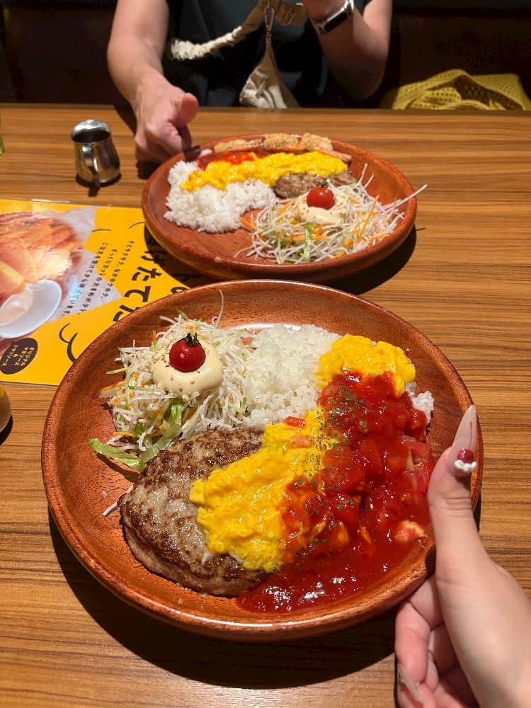 オムライスとハンバーグ合わせたやつを