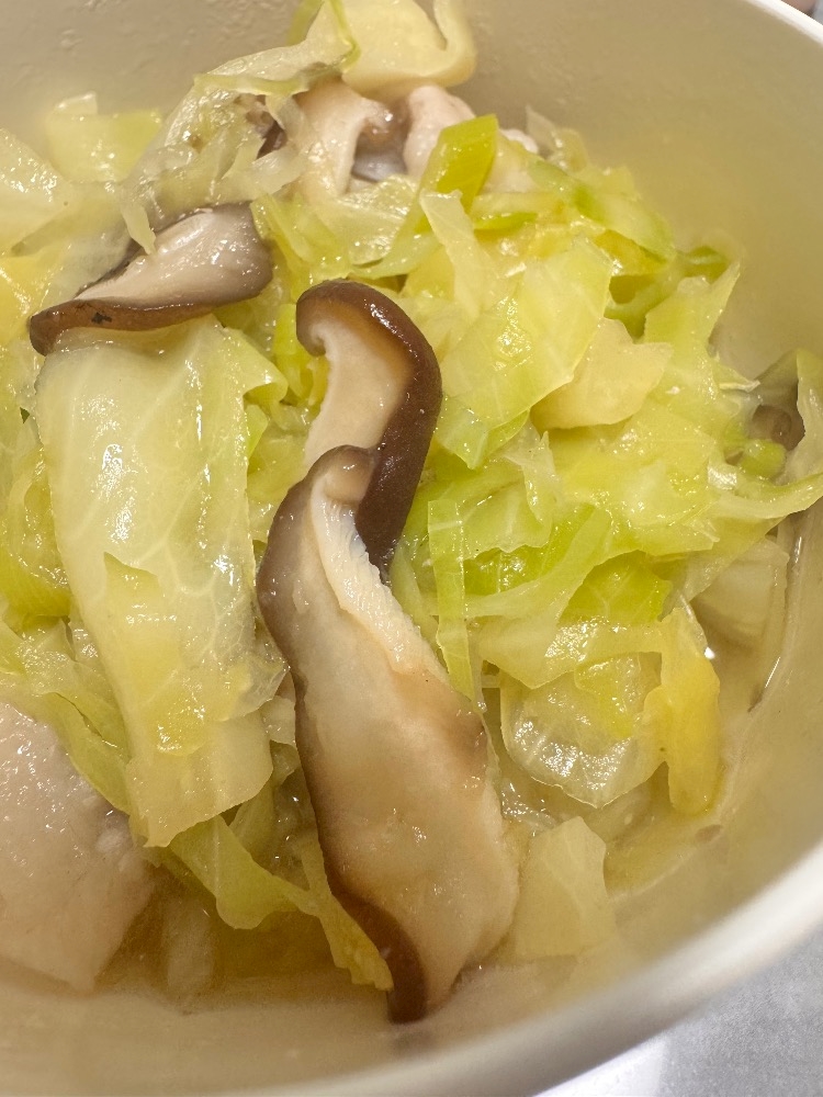 しいたけとネギも入れて無水で蒸して