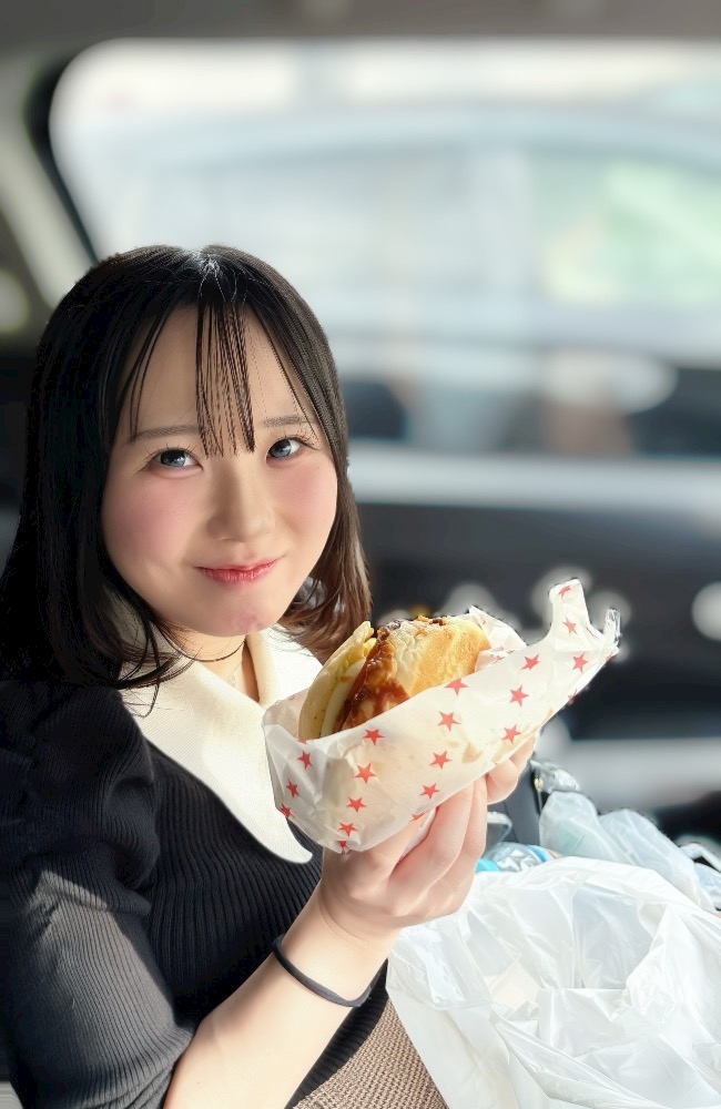 写真は佐世保バーガー食べてニッコリな私。
