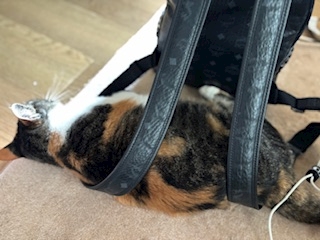 リュック背負って寝ています