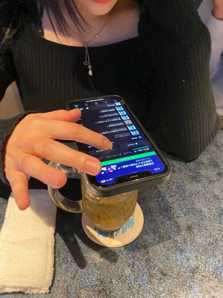 酔うてジョッキをスマホスタンドにしてる