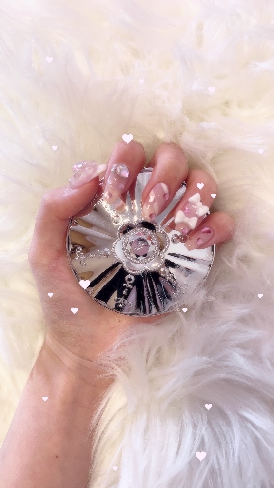 私は今回みたいなリボン‼️ピンク‼️みたいな可愛い〜量産型オタクネイルみたいなのが好きなんですけど