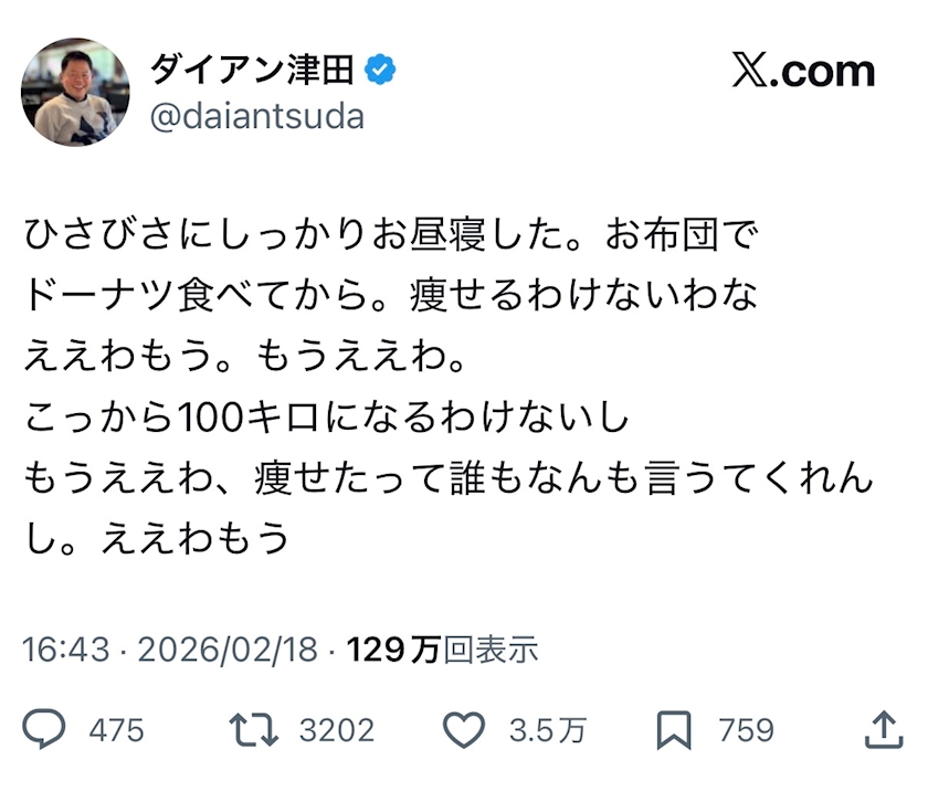 X見てたらダイアン津田のポスト流れてきて