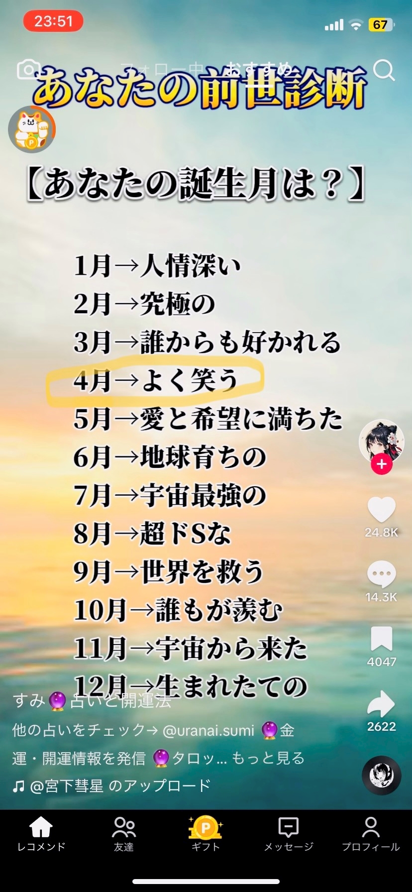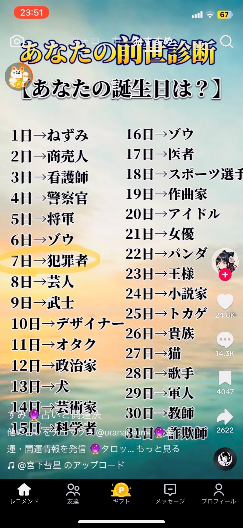 TikTokであなたの前世診断が