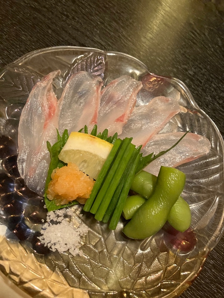 お刺身はニラとか薬味を巻いて食べる初の食べ方で美味しかった✨