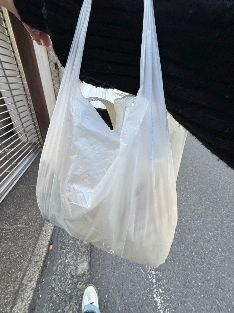 ビニール袋で登校しました