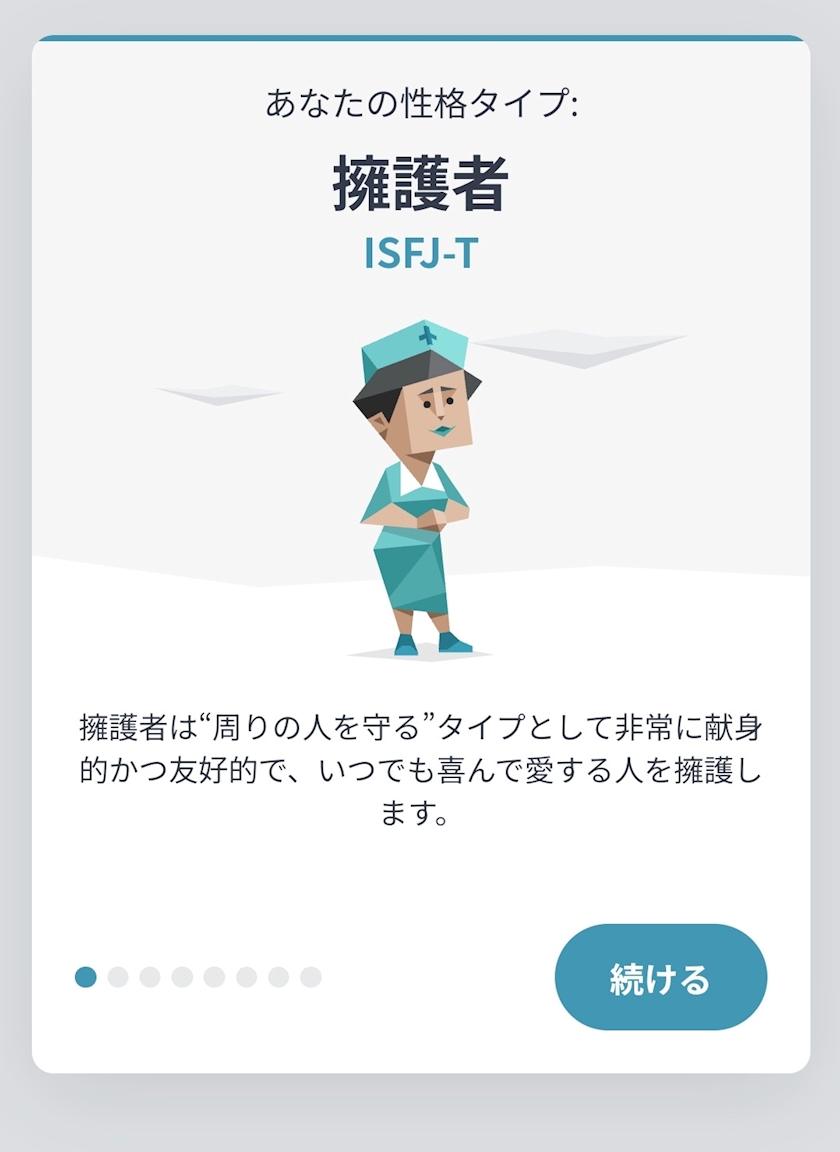 内向的(I)、感覚的(S)、感情的(F)、計画的(J)らしい