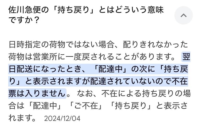 【配達中】とか【不在】
