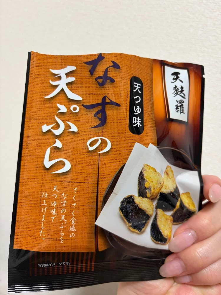 「なすの天ぷら」っていう、ナスの天ぷらをそのままフリーズドライしたやつで、しかもめんつゆ味っていう謎チョイス(笑)