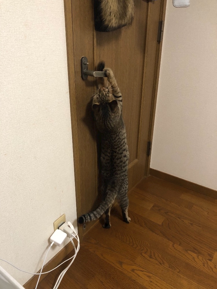 部屋のドアを開けようとする猫くん🐱