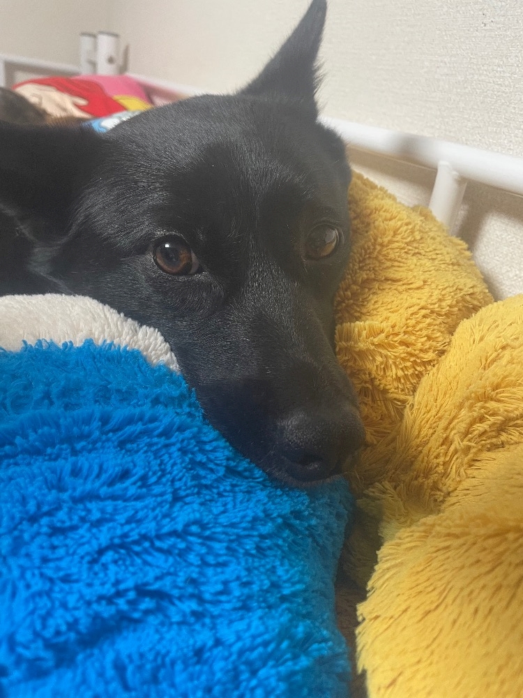 シングルベッドだから中型犬2頭と寝るのは狭い😂