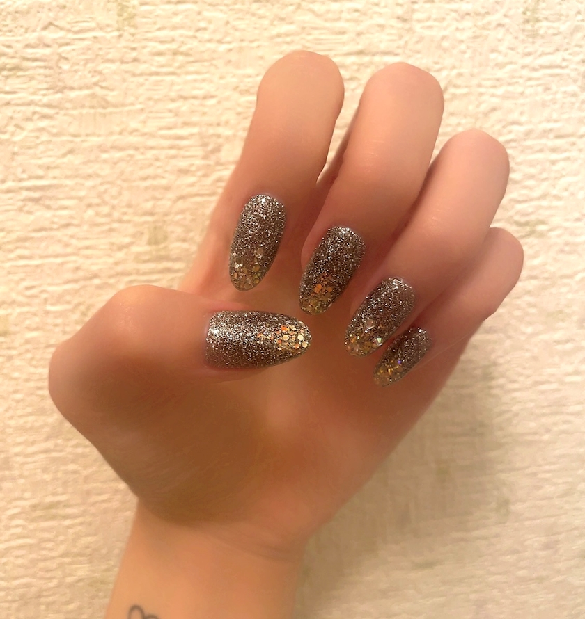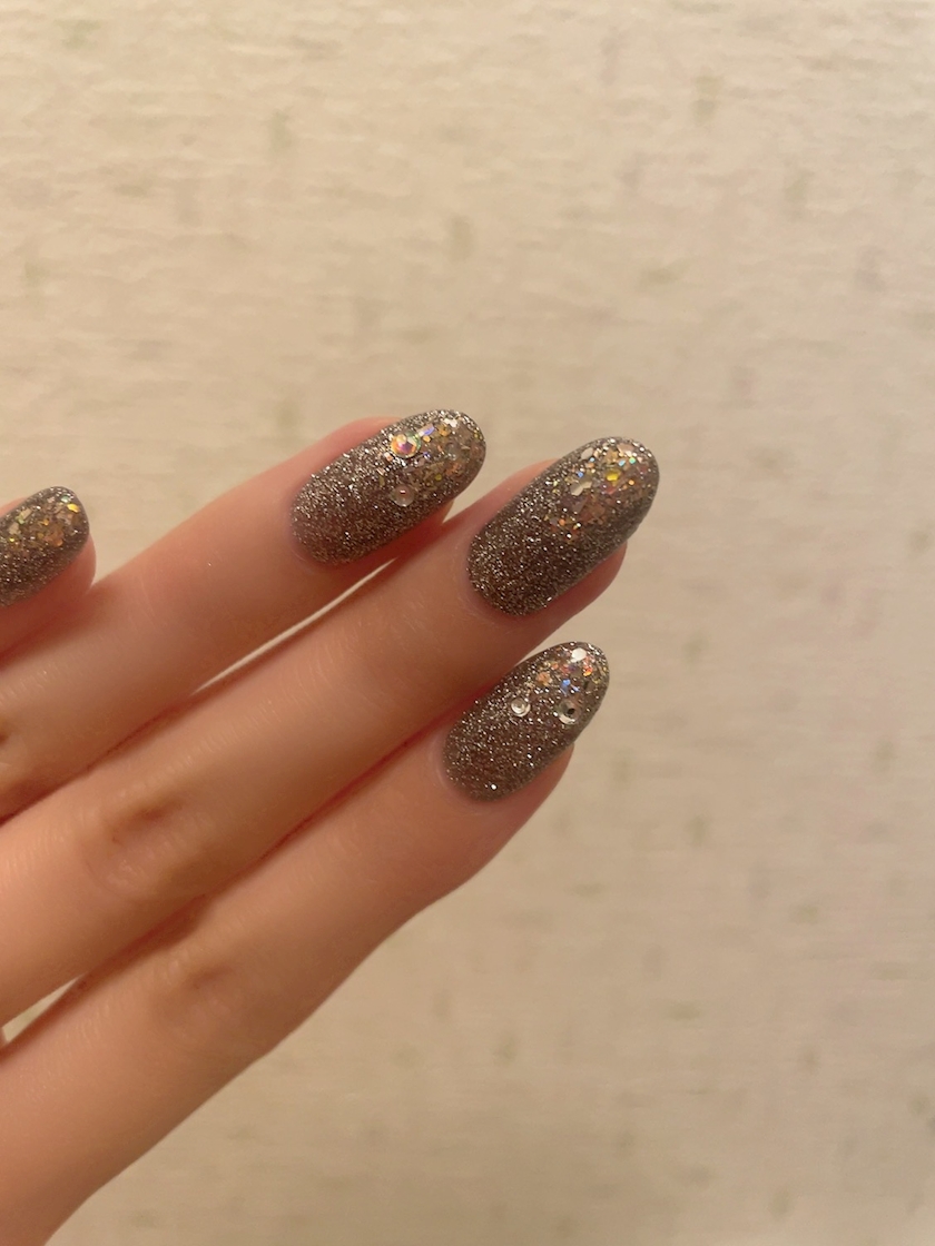 ゴールドのラメをいれたり,ストーン乗せてもらった✨️