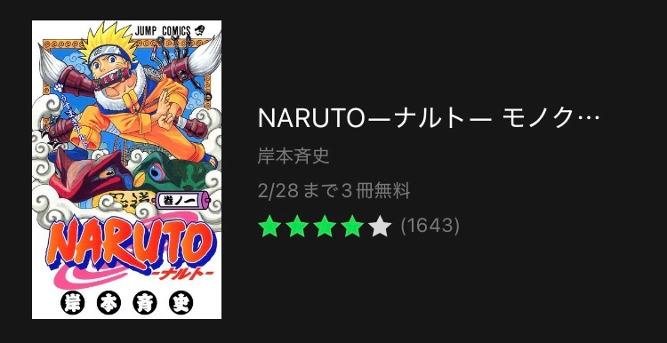 LINE漫画でNARUTO🍥が3冊無料になってて!